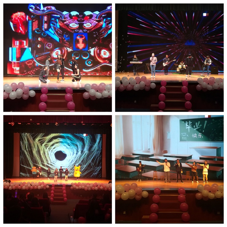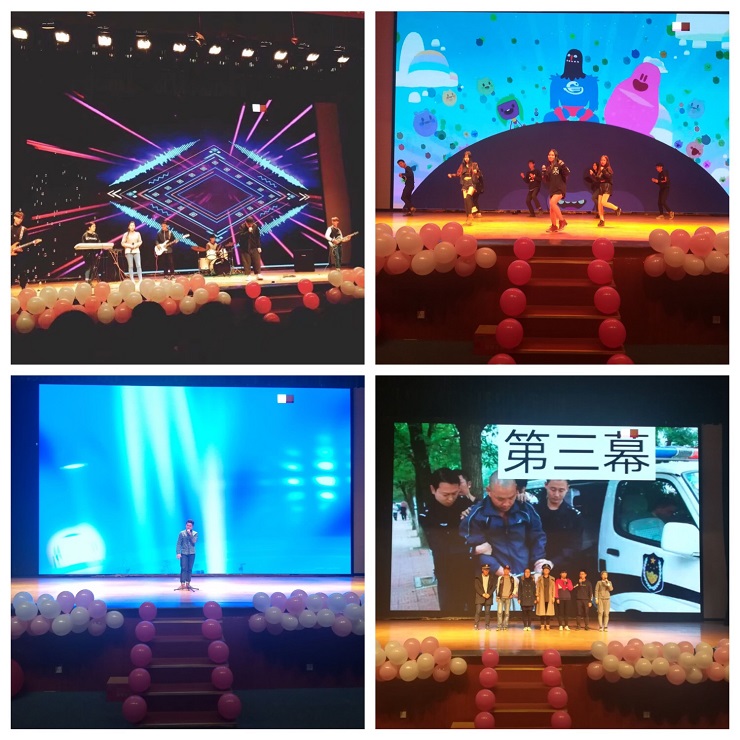 接下来便是大赛的第二个环节:节目展示。占总分的百分之七十。在一段精彩的串烧歌曲后比赛拉开了序幕。首先出场的,是由焦阳、李鹤等同学带来的舞蹈《bangbangbang》,以动感的舞姿和狂野气势带动了全场的气氛,歌曲《相依为命》、《只是没有如果》更是让大家沉浸其中;另外话剧和舞蹈节目层出不穷,赢得台下片片掌声与喝彩。小品《校园生活》展现了大学生活的丰富多姿以及大学生的青春活力。最后,由承办方风采部的干事们带来舞蹈串烧为本次大赛的比赛环节画上圆满的句号。