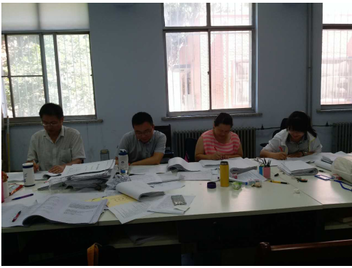 为了保证试卷批改质量,确保成绩真实,会计系会计教研室教师于7月10日-7月14日在1号楼教学进行集体流水阅卷。