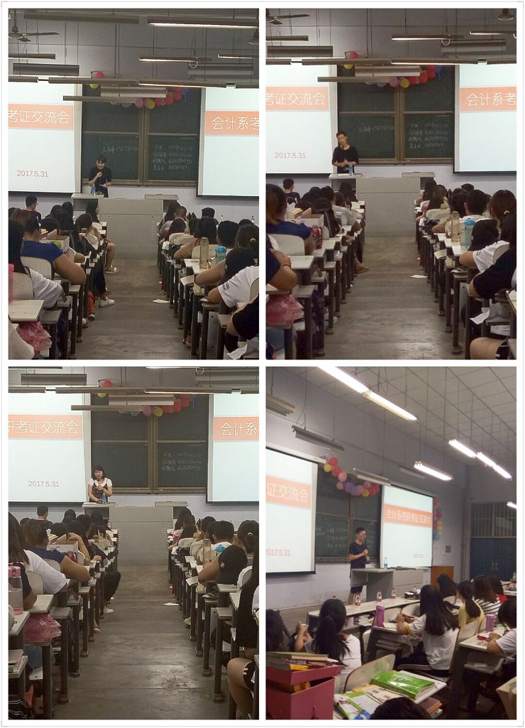 为传承会计系优良学风,帮助学生树立明确的目标。5月31日晚6:30,由会计系团委主办、学艺部承办的会计系“考研考证交流会”在教学一号楼108教室如期举办。参加本次交流会的有:13级审计本科1班邓佳、13级会电本1班张福贵、13级会本11班代解放、13级会本14班查亚兰、13级会电本1班王永平、13级涉会2班古丁伊、13级涉会2班李亚、13级会本1班李鑫达、13级会本6班杨金、09届涉会本科2班熊健、10届优秀毕业生王大千以及会计系部分学生代表。