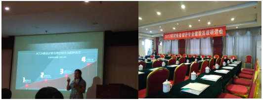 2017年5月5日和5月6日,会计系会计教研室主任车伟娜老师和刘翠老师一同参加了由新道科技股份有限公司主办和信阳职业技术学院承办的2017年河南省会计专业建设高级研讨会。会议首先由信阳职业技术学院李校长致辞,李校长提到人才培养应服务于地方发展,要朝着好就业、快就业和高水平就业的方向发展。河南省总会计师协会刘副秘书长指出信息化建设对会计的冲击体现在三个方面:一是对理念的冲击,二是对会计机构的冲击,三是对会计人员的冲击。