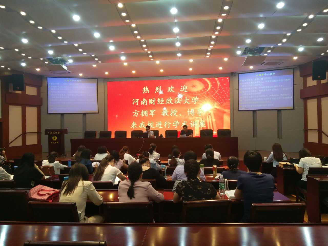 2017年5月19日会计系邀请到了河南财经政法大学研究生处副处长、财务管理学省级教学团队带头人方拥军教授做关于“财会专业课程教学的点滴体会”的报告。方教授的讲座风趣幽默又意义深远,发人深思。报告令各位老师,尤其是年轻的教师在财会专业课程教学上拨开云雾方得真经,不仅丰富了教师的课堂教学方法,而且提高了教师的课堂教学水平。
