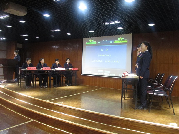 经过一个多月激烈的角逐,有四个班级脱颖而出,站在了今天决赛的现场。第一场比赛的烽火由15会本七班和15审计二班点燃,第二场比赛是由15ClMA实验班和15会本6班对决。辩题分别是:以15会本七班为正方的“知足者常乐”、以15审计二班为反方的“不知足者常乐”和以15ClMA实验班为正方的“人生道路上,拿的起更难”、以15会本六班为反方的“人生道路上,放得下更难”。比赛从一开始就“火药味”十足,比赛双方先分别进行团队展示,经过各自新颖,精彩的方式进行自我介绍后,比赛进入开篇立论环节,双方都做了充足的准备,在阐述己方观点时与实例相结合,引经据典,高度概括性的陈述了己方观点,随后,进入最让人期待的攻辩环节,你有你的特色,我有我的风格,双方更是争辩相对,步步紧逼,现场气氛迅速升温。达到白热化阶段。气氛紧张热烈,双方辩手争锋相对,唇枪舌战,你来我往却又不失风度侃侃而谈,场下观众热情澎湃。随后,自由辩论环节将比赛带入高潮,双发精辟的言辞,展现出咄咄逼人的气势,引经据典,旁征博引,一次次的化险为夷,击破对手的观点。流利的辩词及从容应对挑战的态度获得观众阵阵掌声。