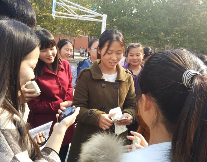 本次活动共分为四个环节。第一个环节是“袋鼠跳”接力,在活动过程中,每一队参赛同学都很努力,拉拉队的同学也在卖力的喊“加油”!第二个环节是“齐心合力运气球”,两个同学背靠背将气球夹在中间,不让气球爆炸或落下,也不能用手触碰气球,默契的配合是这项活动的关键。第三环节的活动是极速数钞票,参赛者一边数钞票,一边回答对方提出的各种问题,在受干扰的一分钟内,谁数的钞票最多,最准确,就获胜。这项活动让现场气氛得到了升华。最后压轴的环节是“信任你我他,盲人踩气球”,带着眼罩,背着队友,跨越障碍物,踩爆气球,最先到达终点的为获胜队。这项活动的关键是互相信任和良好的沟通、表达能力。