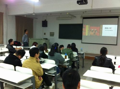 然后,他介绍了用友软件的发展前景以及战略实施环境,并不时与同学们进行台上台下的互动,同学们也提出了自己对就业的疑问,比如公司的工资待遇、生活环境、福利保险,个人发展等问题,均得到了详细的解答,看到同学们脸上满意的笑容,项目主管程推康也说出了自己当年毕业时的就业状况。他幽默诙谐的演讲风格,不时引得同学们的阵阵笑声,自己的就业经历和励志奋斗史引来现场同学的掌声。最后,大家登记了个人信息,用友公司ERP实施顾问刘文悦做了总结发言并期待大家早日加入用友。