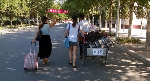 8月30日,在行政楼前,团学会干部面带笑容,精神抖擞,热情接待家长和新生,向他们讲解一些注意事项,并把新生引至体育馆办公点。体育馆内,相关老师和工作人员认真核对新生同学的各类证件及信息,并发放程序单、缴费单,办理宿舍分配及注册手续,在办完一切手续后,我系团学会干部蹬着三轮车积极为各位新生搬运行李,并送至宿舍,每一环节的工作都得到了新生及家长的一致肯定和称赞,使他们深切感受到了会计系大家庭的温暖。尽管烈日当头,大家都坚持奋战在自己的岗位上,忙的不亦乐乎。期间,学院及我系党政领导还亲自到报到现场指导工作,给了工作人员莫大的鼓舞。