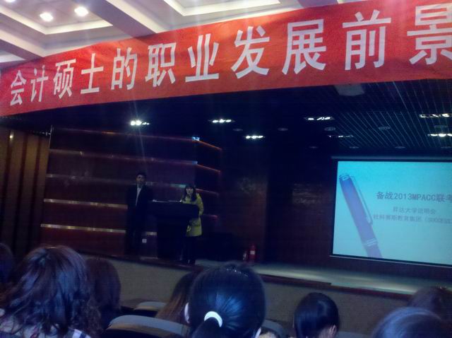 为了让学生们深入了解会计硕士(MPACC)的相关的知识、职业发展前景和考试技巧,3月1日下午2:30,在院系各位领导的大力帮助和促成下,会计系请来了北京社科赛斯MBA教育集团校长、中国MBA教育网创始人赵新老师在外语楼A座一楼多功能报告厅为学生做了一场《会计硕士的职业发展前景及考试技巧分析》的公益讲座,会计系辅导员杨柳、徐瑞娜老师和近300名学生听取了讲座。