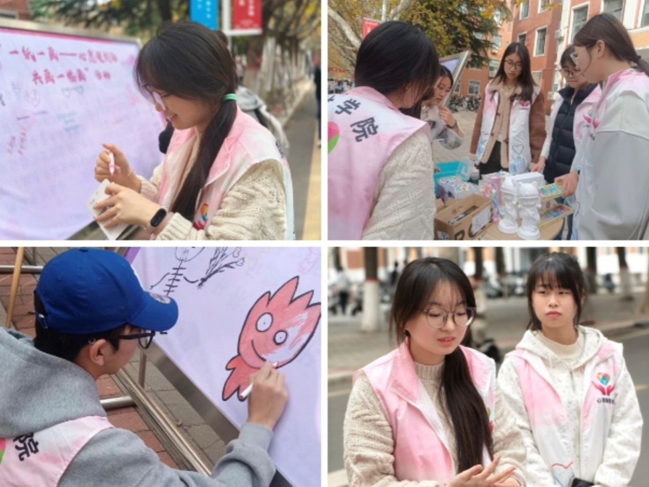 活动开始前,通过班级心理委员线上通知、四号楼公告栏张贴海报等形式,详细介绍活动主题、流程及参与意义,广泛动员同学们报名参与。随后,在活动现场,指导老师赵鑫鑫老师围绕心理健康辅导核心内容展开讲解,为同学们提供了专业的沟通技巧与情绪疏导方法。紧接着,在“心愿便利贴环节”,心航路社团各个成员参与其中,激发了同学们对活动的兴趣,他们纷纷拿起笔,将心中美好的期许、成长的感悟书写在便利贴上,部分同学还主动分享自己的心声,在交流中收获理解与温暖。最后,在“共画一幅画”环节,大家分工协作、各展创意,用丰富的色彩与灵动的线条勾勒心中愿景,在共同创作的过程中拉近了彼此距离,让集体凝聚力得到显著增强。